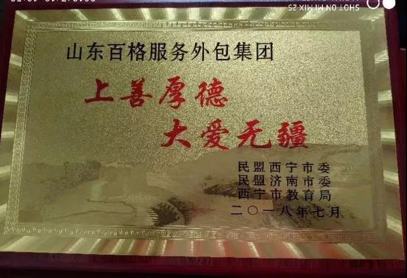 民盟濟(jì)南市委、民盟西寧市委、西寧市教育局聯(lián)合向濟(jì)南市莒南商會(huì)和愛心企業(yè)頒發(fā)“上善若水、大愛無疆”榮譽(yù)牌。