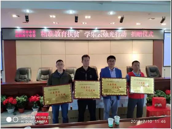 民盟濟(jì)南市委、民盟西寧市委、西寧市教育局聯(lián)合向濟(jì)南市莒南商會(huì)和愛心企業(yè)頒發(fā)“上善若水、大愛無疆”榮譽(yù)牌。